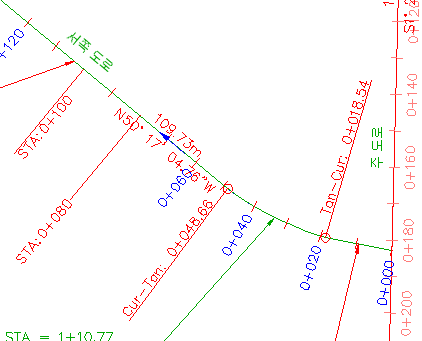 눈금이 여전히 C-ROAD-TEXT 도면층의 빨간색을 상속받는 반면 문자는 파란색입니다.