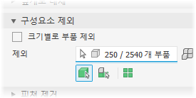 - 구성요소 제외 - 단순화된 부품에 포함하거나 제외할 구성요소를 선택하기 위한 옵션을 제공합니다. 개별 구성요소 또는 구성요소의 모든 발생을 선택합니다.
