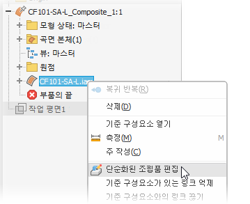 - 검색기에서 마우스 오른쪽 버튼을 클릭하고 단순화된 조립품 편집을 선택합니다.