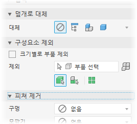 - 덮개로 대체는 구성요소를 단순한 쉐이프로 교체하는 방법을 제공합니다. 옵션을 클릭하면 미리보기에 덮개로 표시된 부품이 표시됩니다.