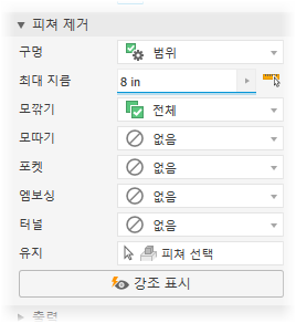 - 피쳐 - 제거할 피쳐의 매개변수를 추가하거나 미세 조정