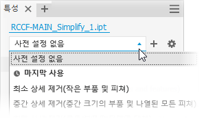 단순화 명령은 단순화된 부품을 작성하고 편집하는 데 사용됩니다. 기존의 수축 포장된 부품은 편집 시 단순화 특성 패널을 사용합니다.
