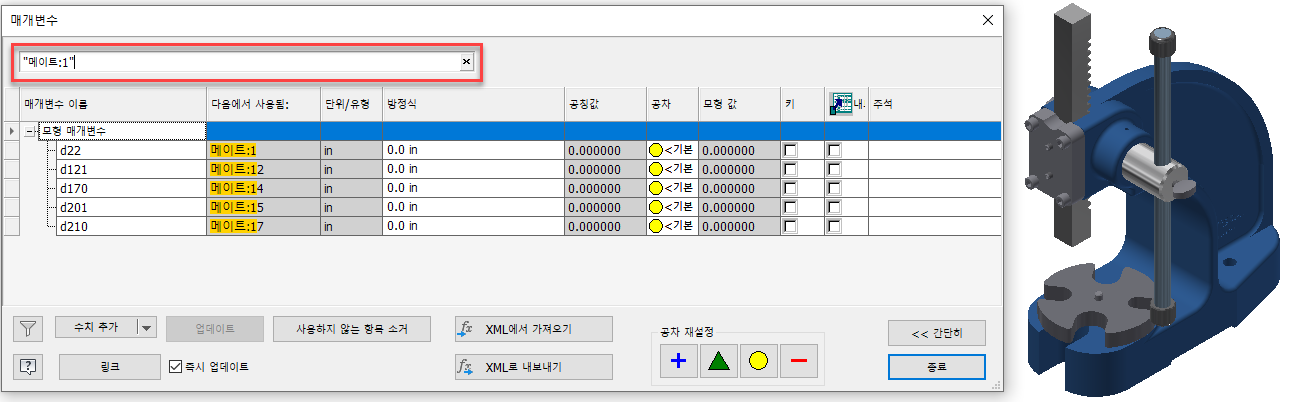 자세한 내용은 모형에서 매개변수 작업을 참조하십시오.