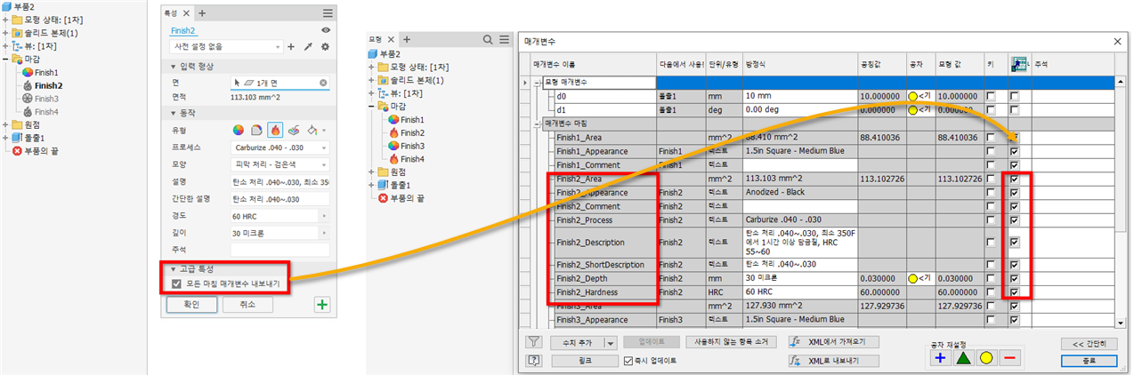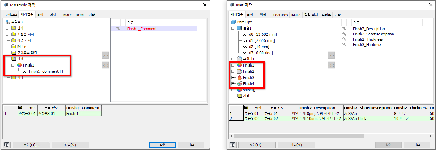 이제 제작 워크플로우를 사용하여 iPart 및/또는 iAssembly에서 마침 피쳐 매개변수를 캡처할 수 있습니다.