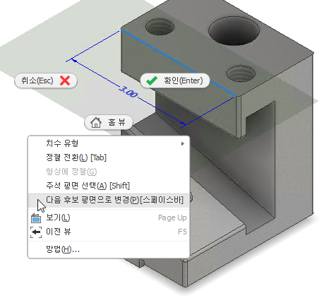 3D 주석(3DA)을 앞으로 작성하는 동안, 주석 평면을 변경하기 위한 마우스 오른쪽 버튼 클릭 메뉴 옵션의 이름이 다음 후보 평면 선택에서 다음 후보 평면으로 변경으로 바뀌었습니다.