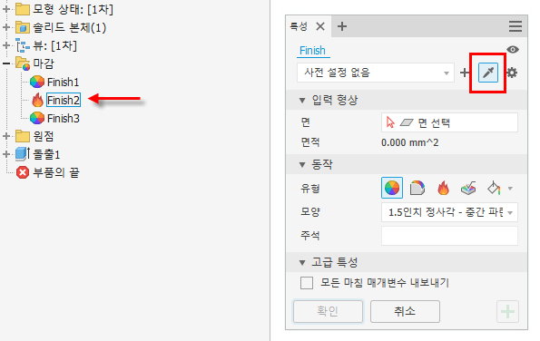 마감 소스 파일(Finish.xml)에 오류가 있거나 파일이 잘못되었거나 누락된 경우 오류 메시지가 표시되고, 기존 마감의 기존 마감 유형만 편집 또는 적용이 가능하도록 설정됩니다. 다른 마감 유형은 적용할 수 없습니다. 그러나 특성 스포이드를 사용하여 기존 마감의 설정을 재사용할 수 있습니다.