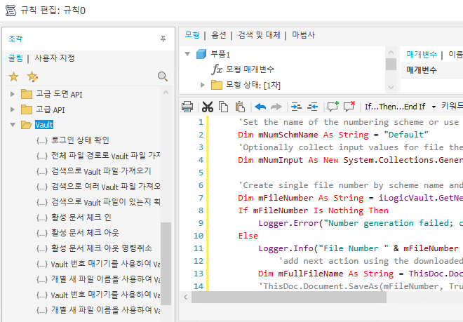 Inventor 2024에서는 Vault를 사용하는 것이 더욱 쉬워졌습니다. iLogic에 새로 추가된 기능을 통해 Inventor는 체크 아웃, 파일 가져오기, Vault 검색 등을 자동으로 수행할 수 있습니다. 편집기에 추가된 Vault 코드 조각을 사용하면 빠르게 시작할 수 있습니다.