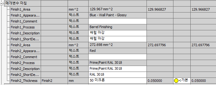 새로운 마침 기능을 사용하면 부품, 구성요소 및 조립품의 모양뿐만 아니라 재질 코팅 또는 표면 다듬질과 같은 제조 프로세스도 지정할 수 있습니다.
