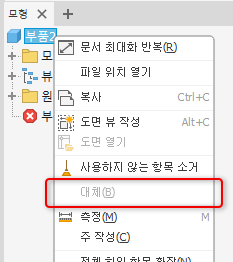 이 변경 사항은 부품 문서에 영향을 줍니다. 따라서 새 부품 문서에서도 상황에 맞는 메뉴에 읽기 전용 대체 상태가 표시됩니다. 이 옵션은 선택 취소되어 있습니다.