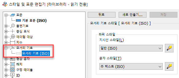 모서리 기호 스타일이 도면 스타일 및 표준 편집기에 추가됩니다.