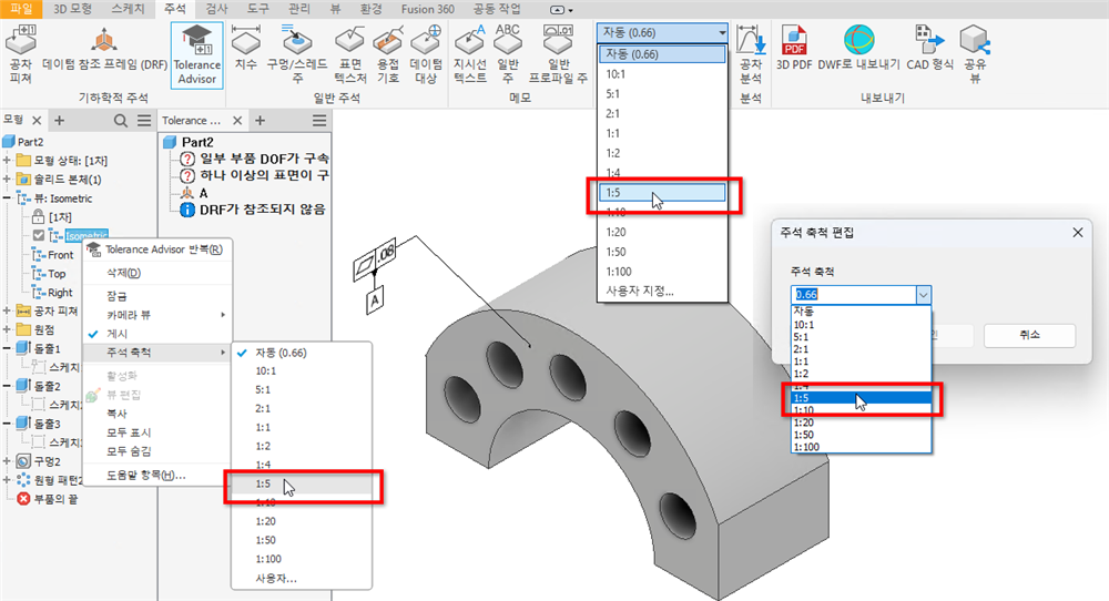 이 릴리즈에서는 1:5 축척이 DIN EN ISO 55455마다 주석 축척 드롭다운에 추가되었습니다.