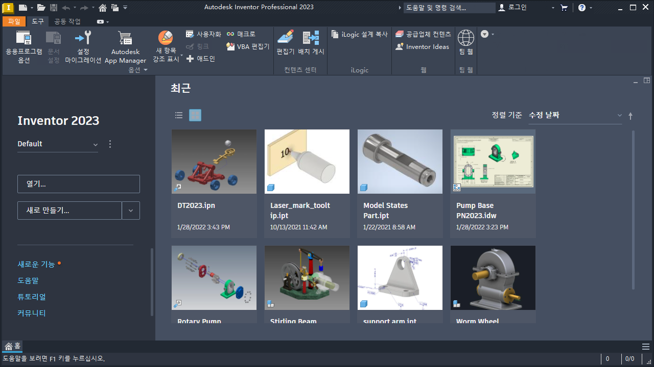 Autodesk Inventor 최신 릴리즈의 새로운 기능에 대해 알아봅니다. 기술에 관한 자세한 정보는 릴리즈 정보를 참고하십시오.
