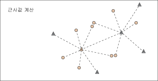 네 번째 계산 단계에서 알 수 없는 모든 점에 대한 근사값 좌표를 계산할 수 있습니다. 이 계산으로 GPS 세션에서는 변환 매개변수가 결정되며, 타키미터 세션에서는 각 측점의 방향이 결정됩니다.