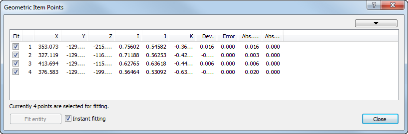 - 측정된 점을 두 번 클릭합니다. 측정된 점의 상세 정보를 표시하는 형상 항목 점 대화상자가 표시됩니다.