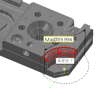 거리, 반지름 및 각도 치수에 대한 참고 포인트와 라벨의 시각적 예입니다.