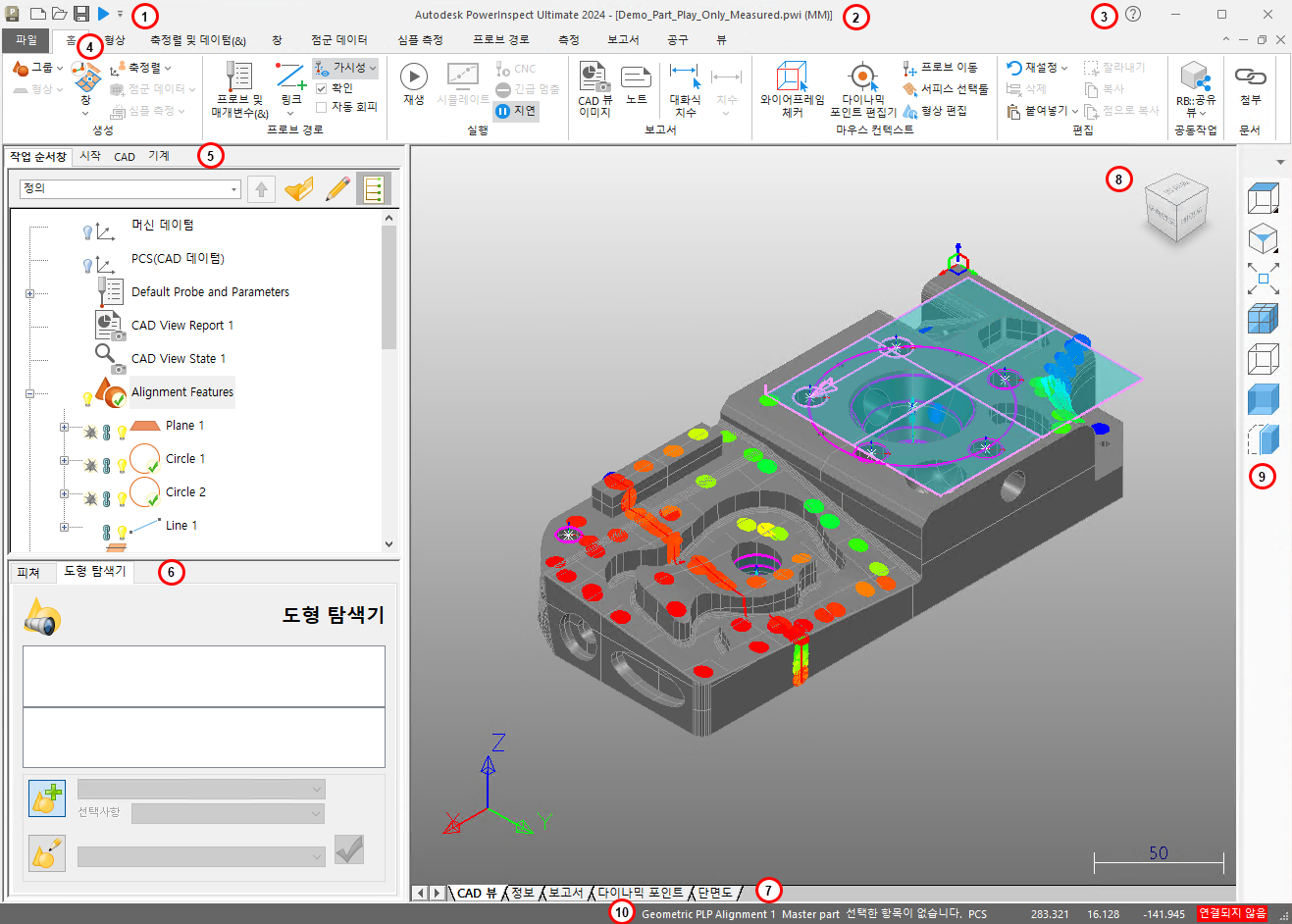 PowerInspect에서 사용되는 창, 리본 및 기타 컨트롤에 대해 소개합니다.