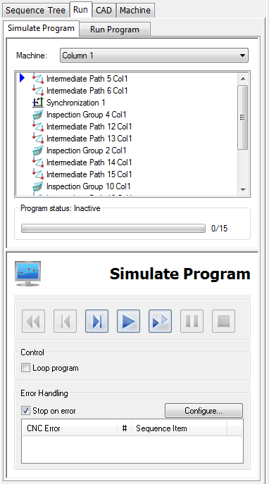 - 시뮬레이션 프로그램 대화상자의 버튼을 사용하여 측정 순서를 시뮬레이션합니다. 예를 들어, 선택한 열에 할당된 모든 아이템을 시뮬레이션하려면 모든 아이템 실행