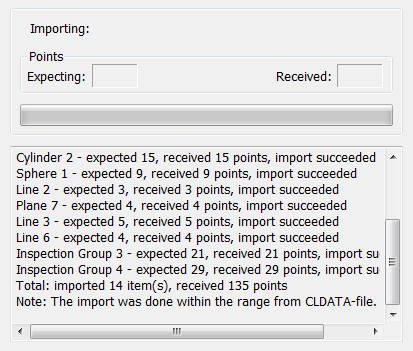 을 클릭하여 측정치를 가져옵니다. 가져오기가 진행되면서 NC 프로그램 탭에 가져오기 세부사항이 표시됩니다.