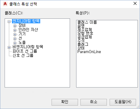 선택된 클래스를 기반으로 하는 특성 리스트를 표시합니다.