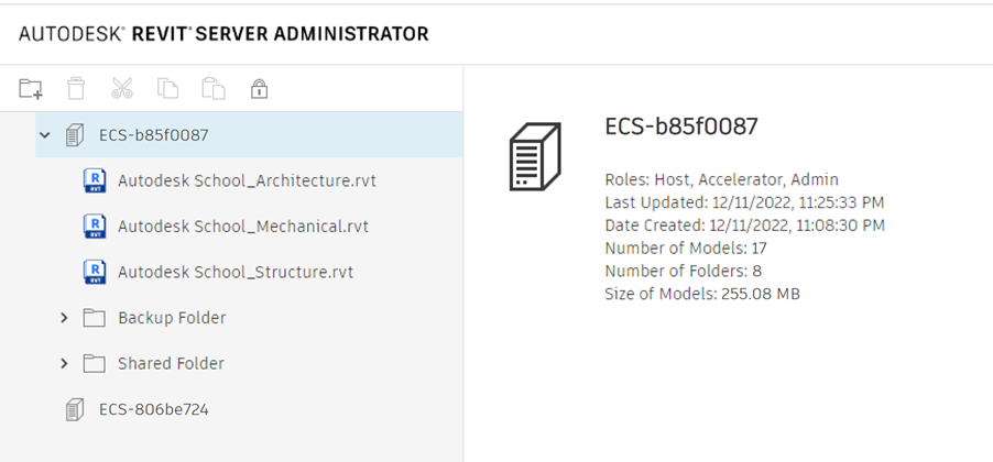 Revit Server 관리자를 사용하여 Revit Server 호스트의 폴더 및 중앙 모델을 관리하고 관리 작업을 위해 모델을 잠글 수 있습니다.