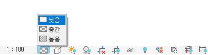 도면 영역 하단의 뷰 조절 막대에서 상세 수준 아이콘을 클릭하고 옵션을 선택합니다.