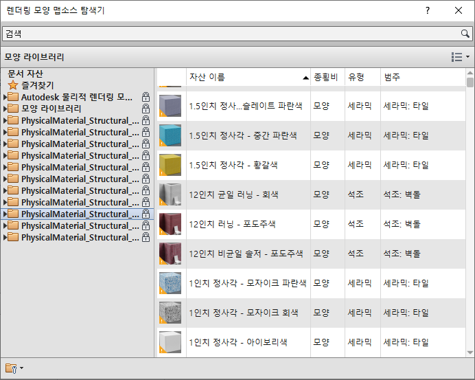 문서 렌더링 모양 맵소스 집합에서는 모든 렌더링 모양 맵소스를 편집할 수 있습니다. 라이브러리에서 선택한 렌더링 모양 맵소스는 편집을 위해 프로젝트로 로드됩니다.