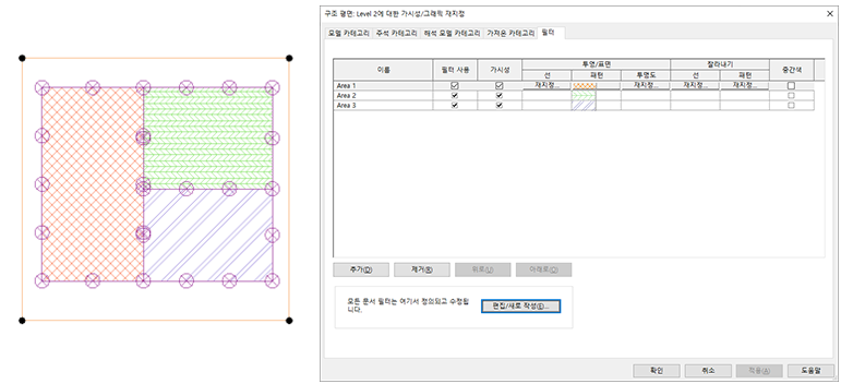 필터를 사용하여 부하 매개변수를 기준으로 평면도에서 각 면하중 경계를 식별합니다.