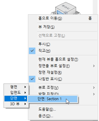 ViewCube를 사용하여 3D 뷰의 방향을 모델의 평면도, 입면도, 구획도 또는 3D 뷰로 지정할 수 있습니다.