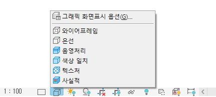 3D 뷰에 배경을 지정하려면 뷰 조절 막대에서 비주얼 스타일 아이콘을 클릭하고 그래픽 화면표시 옵션을 클릭합니다.