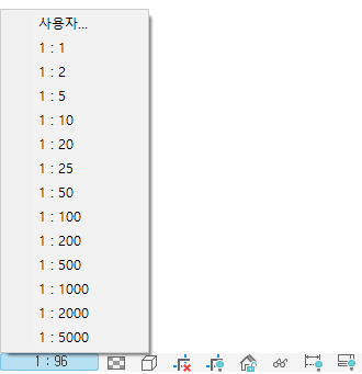 - 뷰 축척을 변경합니다. 뷰 조절 막대에서 축척에 원하는 축척을 선택합니다.