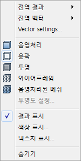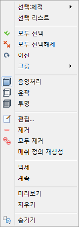 모든 결과 작업에서 오른쪽 클릭 메뉴를 사용하면 모형, 부품 또는 결과 객체의 모양을 수정할 수 있습니다.