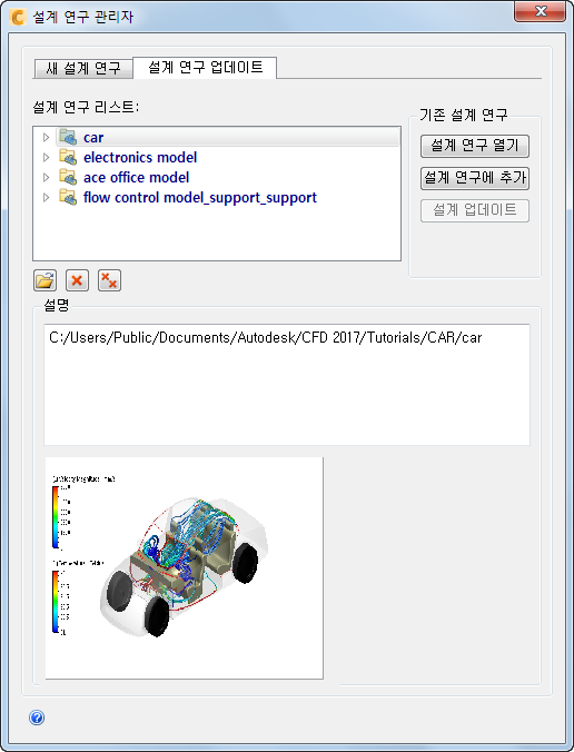 - 설계 연구 업데이트 탭을 클릭합니다.