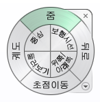 커서를 휠의 명령 위로 이동하면 쐐기 또는 버튼의 동작을 설명하는 툴팁이 휠 아래에 표시됩니다.