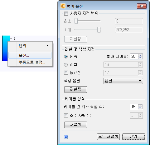 레벨 및 색상 지정: