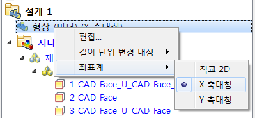 이 해석은 X 축에 대해 축대칭입니다. 설계 연구 트리에서 좌표계를 변경합니다.