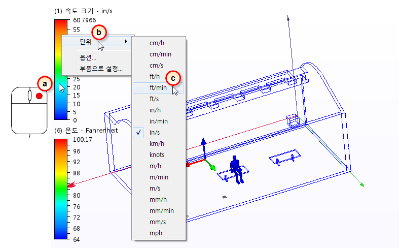 5. 속도 크기의 기본 단위는 in/s입니다. 이 단위를 ft/min으로 변경해 보겠습니다.