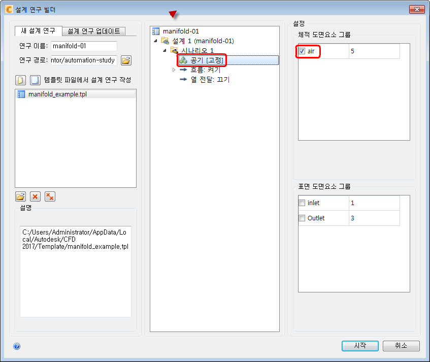 참고: 주의! 설계 연구 빌더 대화상자를 닫지 마십시오.