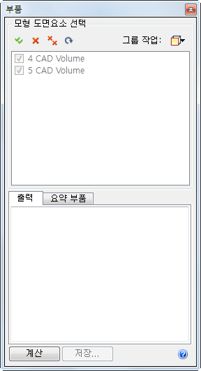 각 부품에 인접한 확인란을 선택합니다(모형 도면요소 선택 영역).