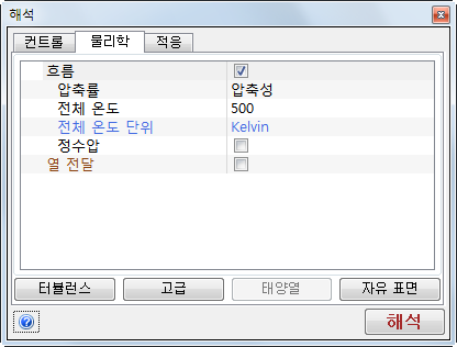 해석 대화상자에서 솔루션 제어를 클릭하고 대류항을 클릭합니다. 대류항 옵션 대화상자에서 ADV2를 선택합니다. 확인을 클릭하고 솔루션 제어 대화상자에서 확인을 클릭합니다.