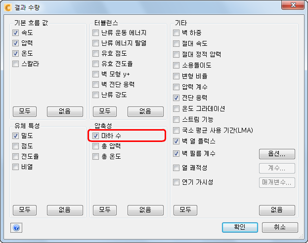 마하 수를 선택하여 마하 수의 출력을 사용으로 설정합니다. 확인을 클릭합니다.