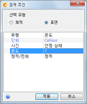모형에 1개의 속도 경계 조건, 2개의 온도 경계 조건 및 1개의 압력 경계 조건이 있습니다.