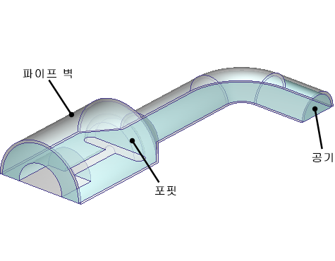 해석 형상은 외부 파이프 벽, 포핏 및 공기의 세 부분으로 구성됩니다.