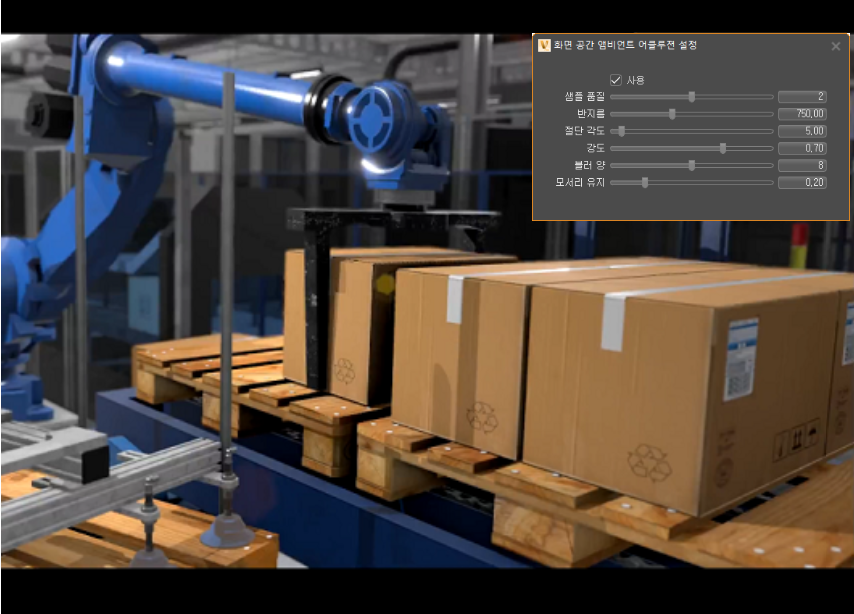 컨텐츠 어댑티브 쉐이딩 - 재질별로 쉐이딩 속도를 설정합니다. 이 기능은 물결 효과가 발생하기 쉬운 미세한 패턴이 있는 재질에 유용하게 사용할 수 있습니다. 이 기능은 미세 조정할 수 있습니다. 컨텐츠 어댑티브 쉐이딩을 사용하면 특정 재질을 보다 높은 품질로 렌더링할 수 있습니다.