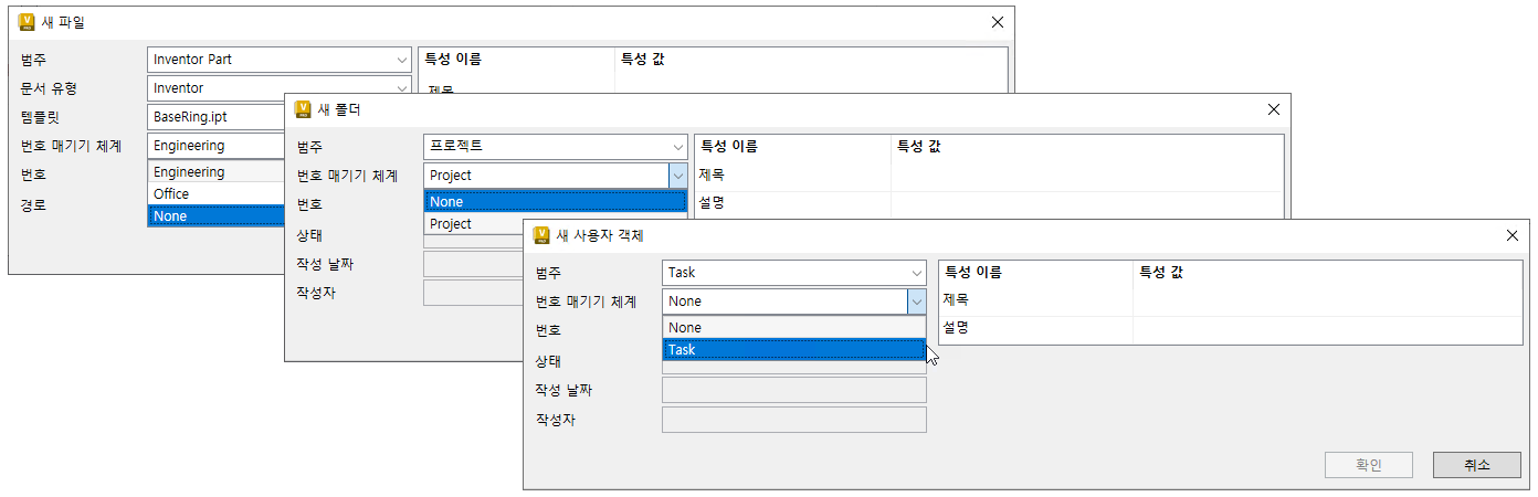 CAD 응용프로그램의 경우 범주 선택 필터와 상관없이 모든 파일을 번호 매기기 체계 "엔지니어링"으로 지정합니다.