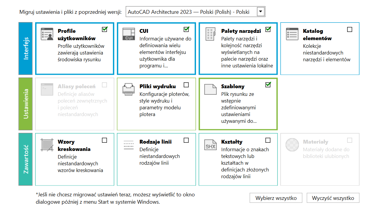 Uwaga: Aby zwiększyć wydajność i szybkość reakcji w programie AutoCAD, należy włączyć przyspieszenie sprzętowe.