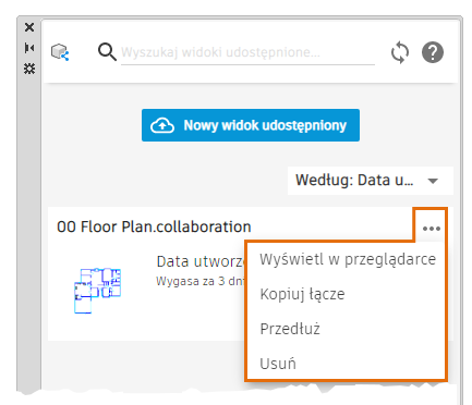 Za pomocą opcji w menu Więcej można zarządzać widokami współdzielonymi.