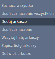 – zapisz bieżącą listę arkuszy w pliku, aby ułatwić jej pobranie