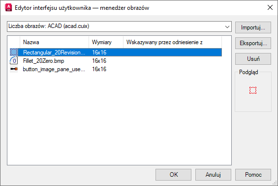 - Na karcie Dostosuj, na panelu Dostosowywane pliki: <nazwa pliku> kliknij przycisk Menedżer obrazów.