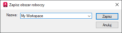 W oknie dialogowym Zapisz obszar roboczy w polu Nazwa wprowadź nazwę, aby utworzyć nowy obszar roboczy lub wybrać z listy rozwijanej obszar, który zostanie zastąpiony.