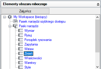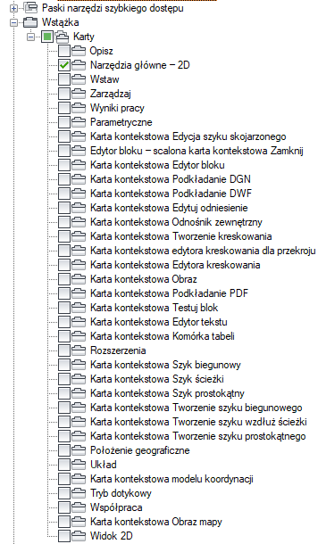 - Na panelu Zawartość obszaru roboczego kliknij węzeł drzewa Pasek narzędzi szybkiego dostępu.